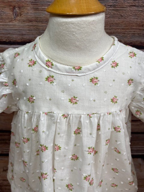 blouse romantique à souhait avec ces petites roses anciennes, manches courtes